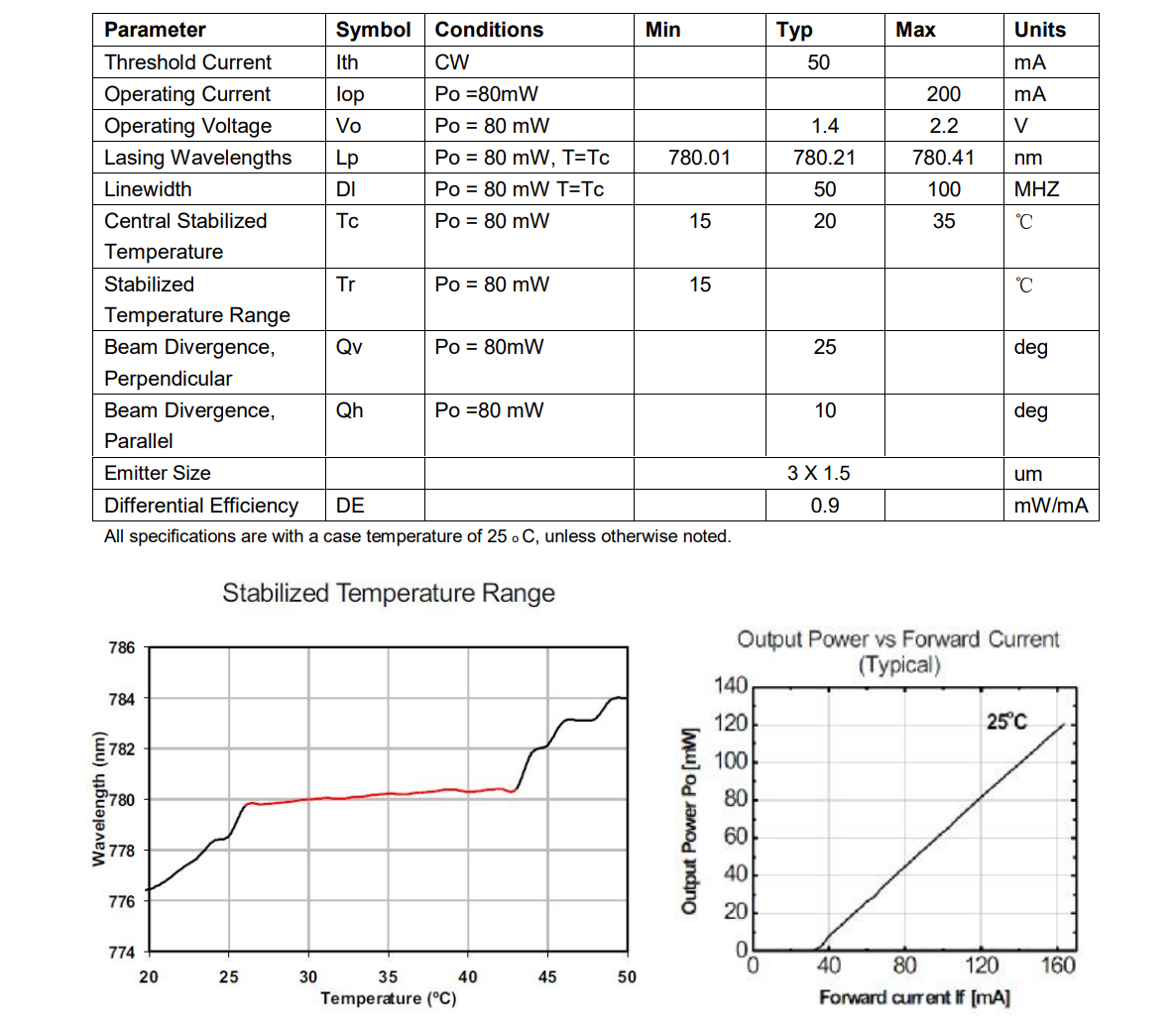 780nm Wavelength Stabilized Laser is a single mode, miniature laser in a standard TO package.